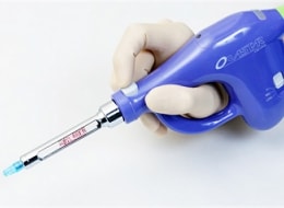 電動注射器を使えば、細い針でもゆっくりと麻酔液を注入することが出来るので、