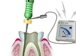 根管長測定器は口腔粘膜と根管内に挿入した測定電極の先端との間のインピーダンス値を測定することにより、根の長さを把握する装置です。