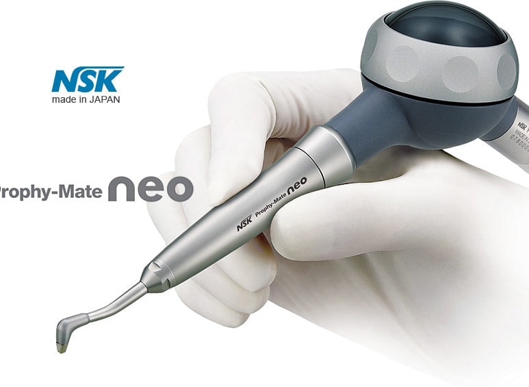 当院では、茶渋やタバコのヤニなどの頑固な汚れには炭酸カルシウムを主成分とするパウダーを吹き付けて除去するプロフィーメイトneoを使用しております。